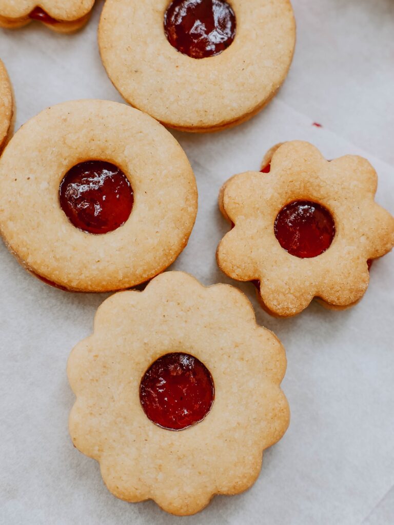- Hotové cukroví (balíček 500 g): linecké s rybízovým džemem, vanilkové rohlíčky ze špaldy, perníčky, včelí úlky (2 ks), čokoládové koule s amarettem, čokoládové věnečky s džemem a kávou, ořechy s pekanovým krémem