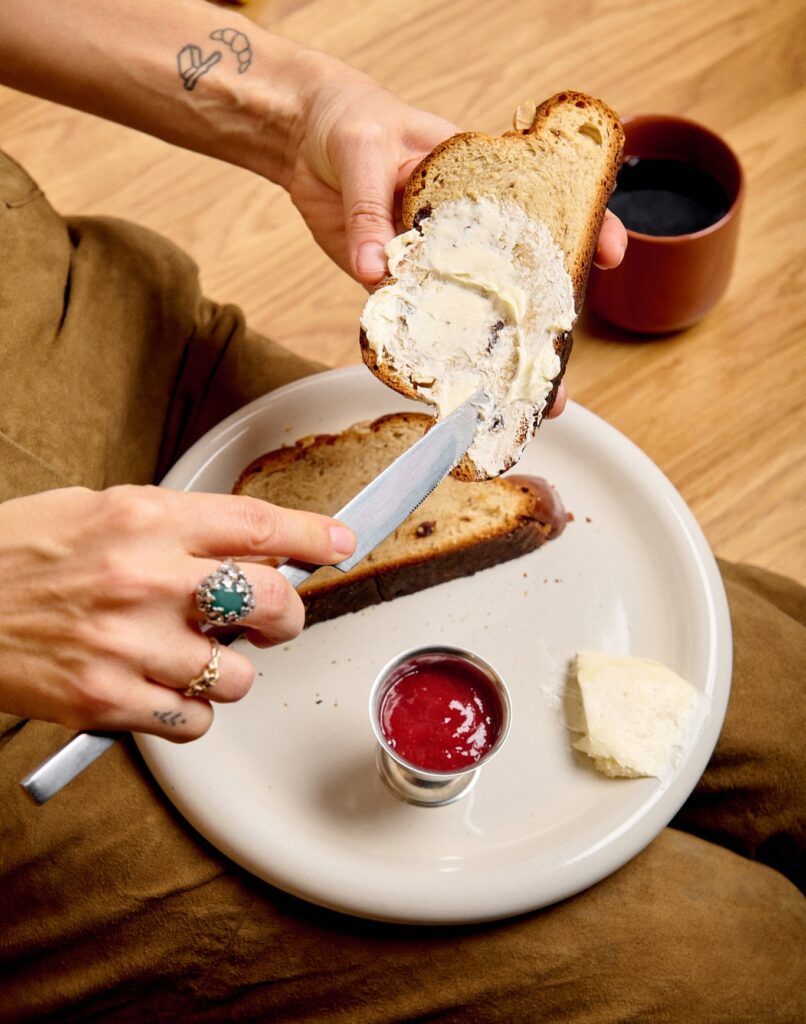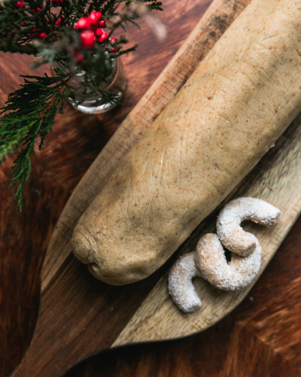 V Esce to dělají po svém: vánočku zadělávají ze dvou druhů bio mouky od českých mlynářů, voní po vanilce, badyánu, muškátovém oříšku a citronové kůře. A základ tvoří jejich máslové kynuté těsto s rozinkami a mandlemi.